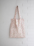 商品INFO 柔らかなコットン一枚仕立て、生成りの生地に小花がプリントされたトートバッグ。