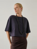 シックで軽やかな aubergine(なす紫)カラーのクロップドトップス。程よく張りのあるジャージーなので美しいディテールが着崩れることなく、エレガントなスタイリングで一日を過ごせます。
